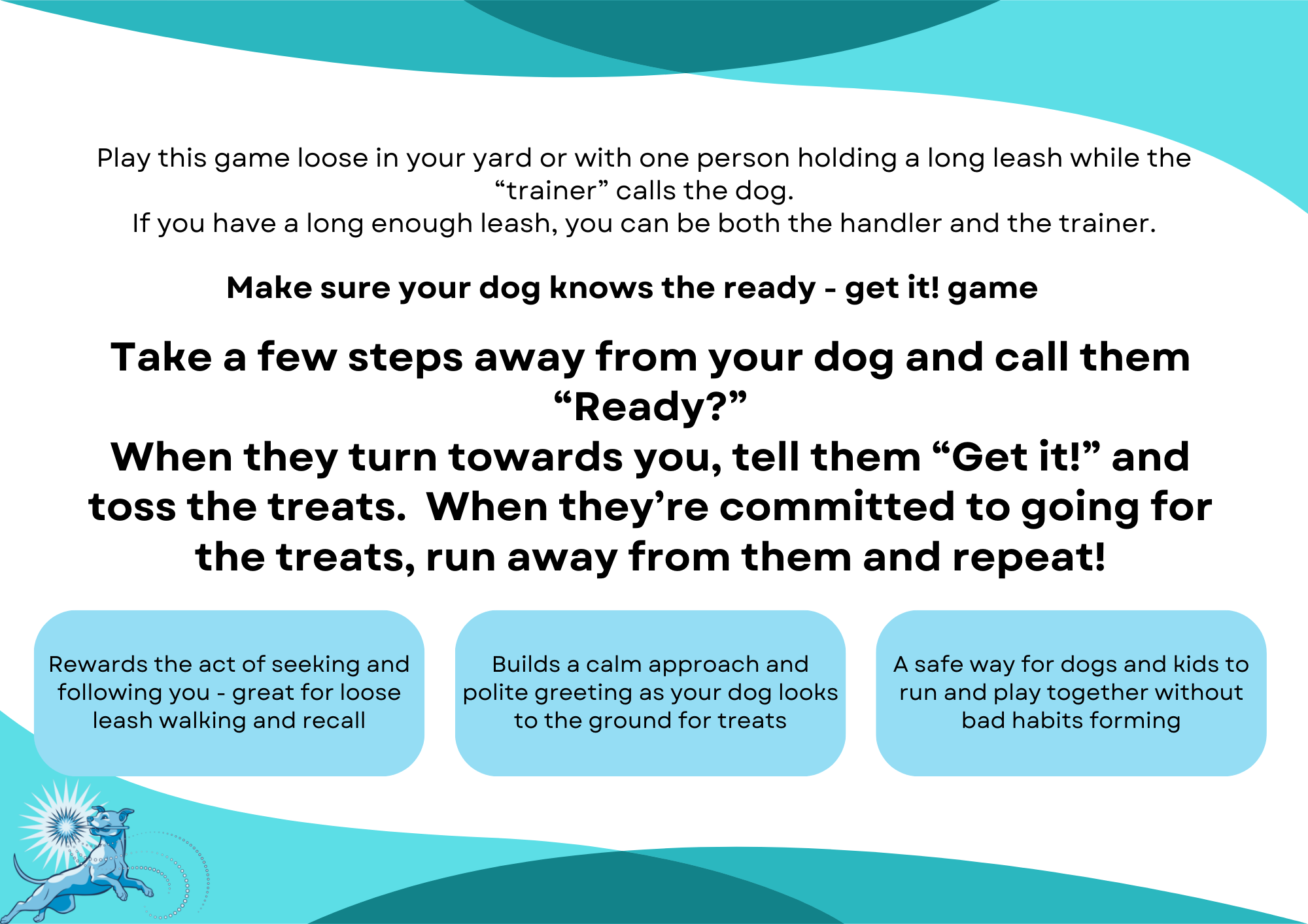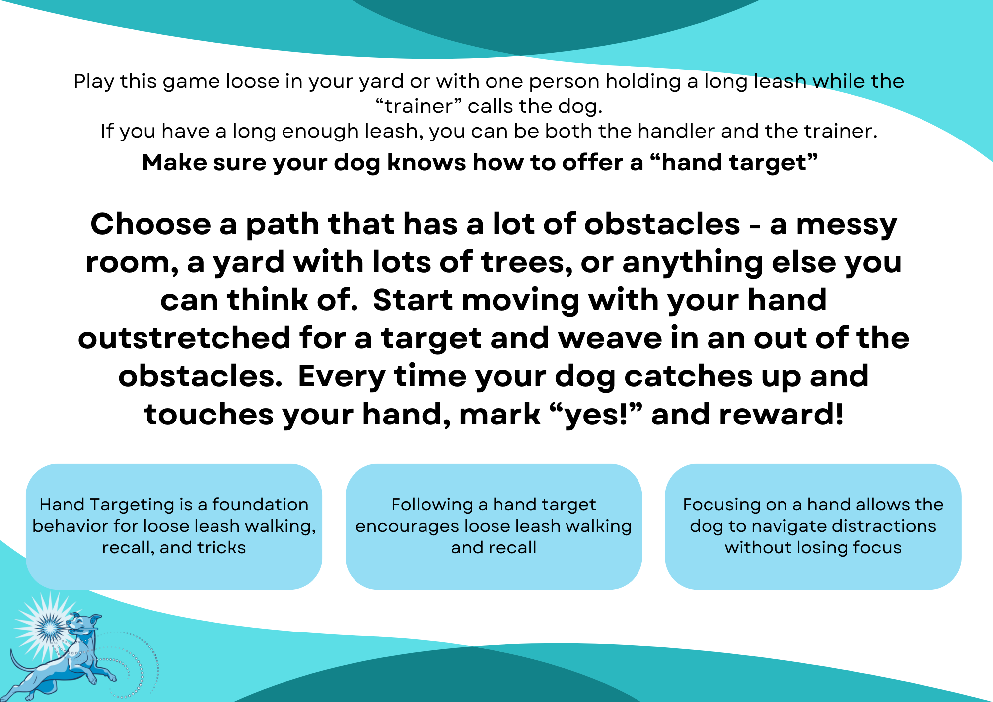It was great speaking to you and meeting Blue last week! I’d be thrilled to help build some arousal regulation with Blue and address some of the early signs of reactivity you are seeing in and out of the house. As a quick review, I would focus on building in ways for Blue to move but maintain a lower arousal state during greetings and when things are exciting with the kids, as well as when out and about on walks at a distance she can manage. You can start building Look at That behaviors with benign distractions as well so that can become a skill in your toolbox when she’s out on walks as well!