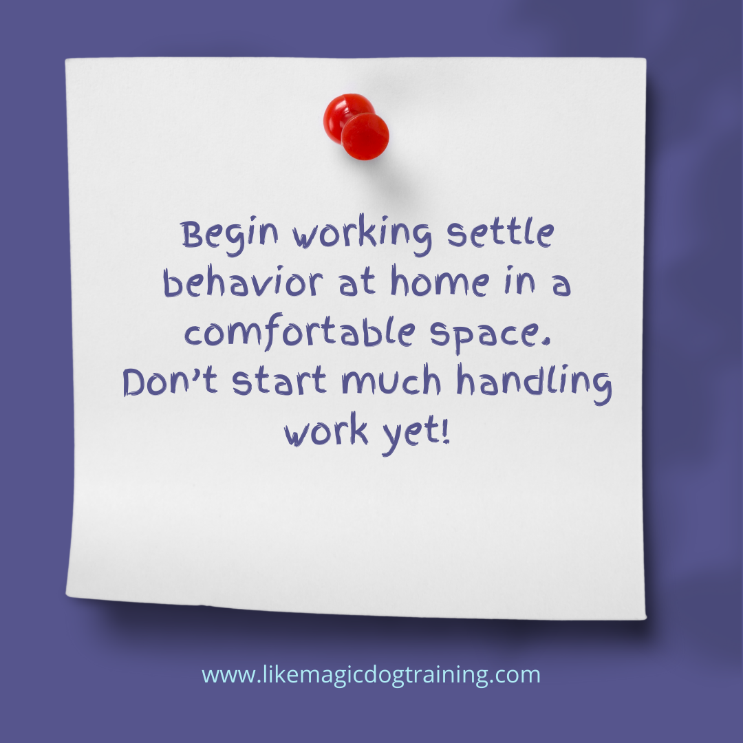 You’ll find more on settling in “Learning to Relax” in Module 2 but I want to make this extra predictable for Charzi as you can use it outdoors for triggers but also indoors as a primer for handling consent. For now, I wouldn’t go any further than noting body language shifts after he’s relaxed in the context of this activity and moving hands near him, or touching the leash.