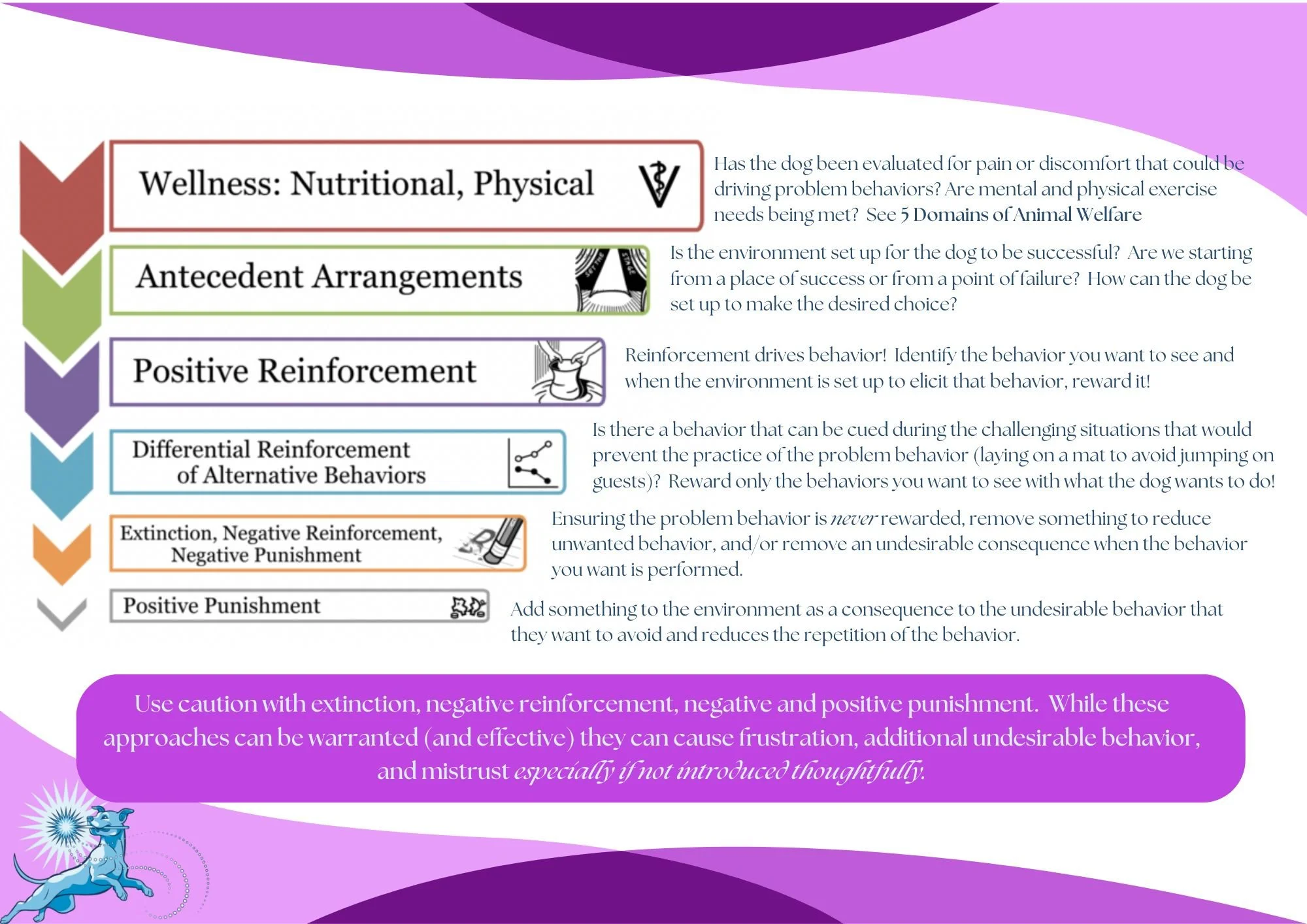 Addressing behavior from a professional lens means approaching change from a systematic and humane process. While you can read a little about my training philosophy on my Frequently Asked Questions and in this blog post, generally speaking when looking at behavior change I will recommend you review the Human Hierarchy of needs for your dog.