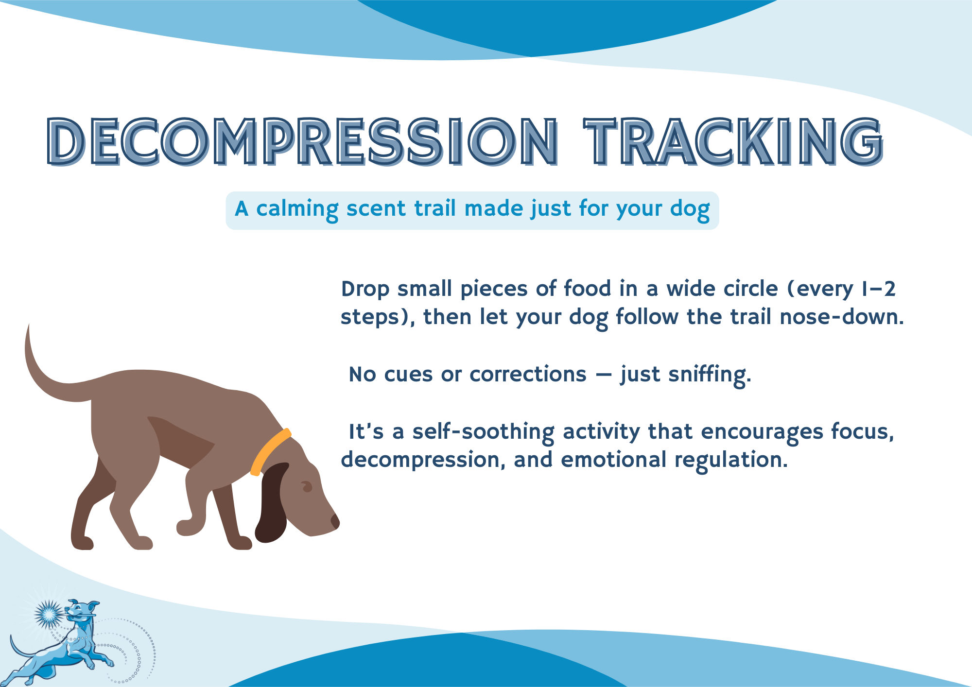 Try Decompression Tracking in new locations—circle tracks with frequent treats are ideal.
