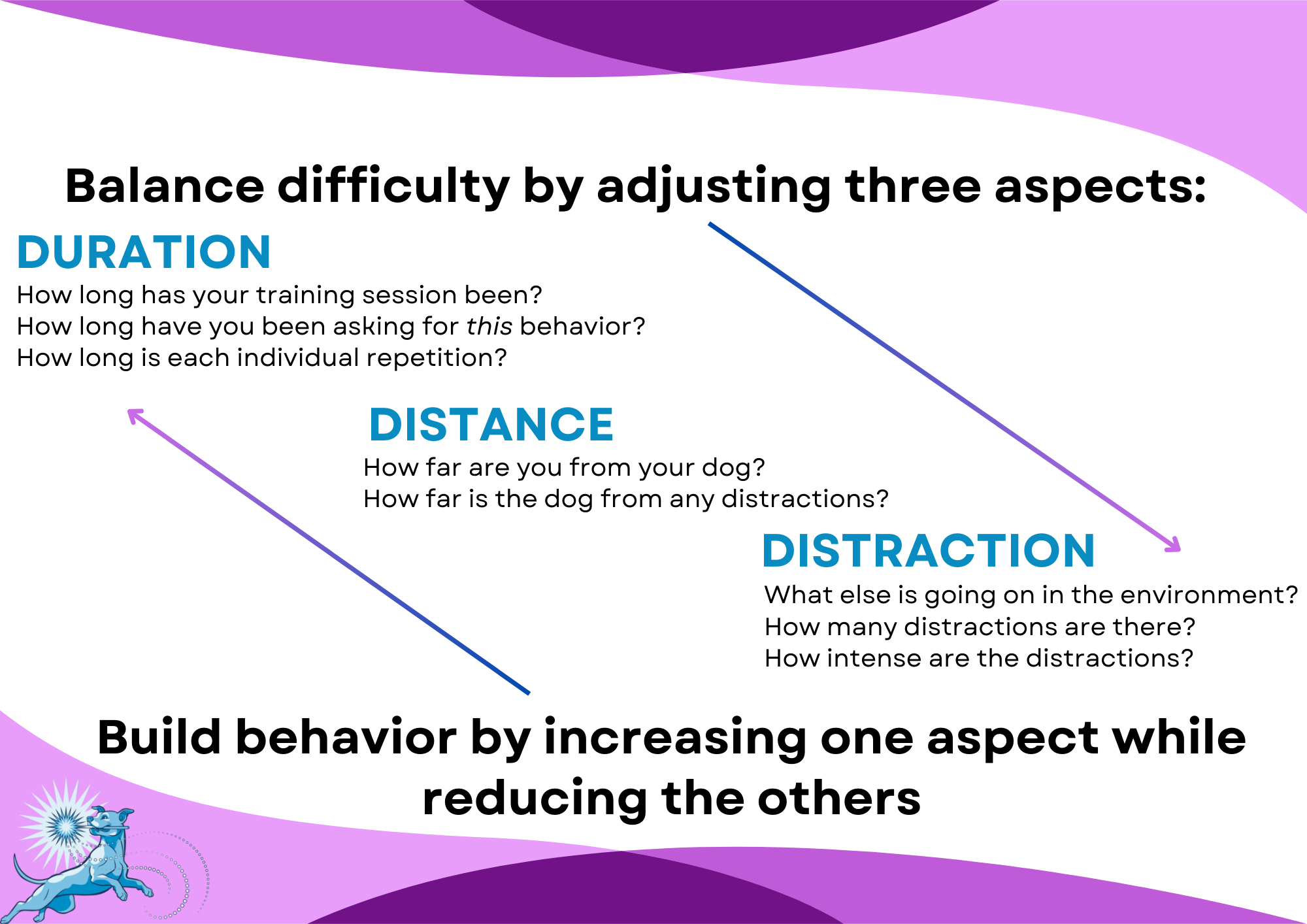 Think of these behaviors as a ladder—you can move up or down depending on the challenge you’re facing. If it’s tough, stick with food scatters. If it’s easing up, Ready Get It gives a bit more structure. If she’s doing well, Look at That pushes her coping skills a bit further.